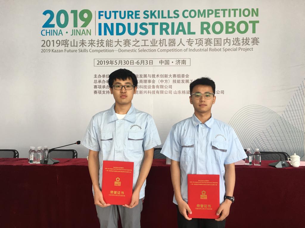 6月2日、6月3日,2019喀山未来技能大赛之工业机器人专项赛国内选拔赛在济南市中德栋梁.诺贝尔科技工业园举行。我院选手斩获第一名的好成绩,荣获2019喀山未来技能大赛之工业机器人专项赛决赛参赛资格。