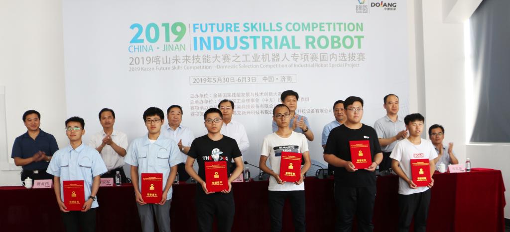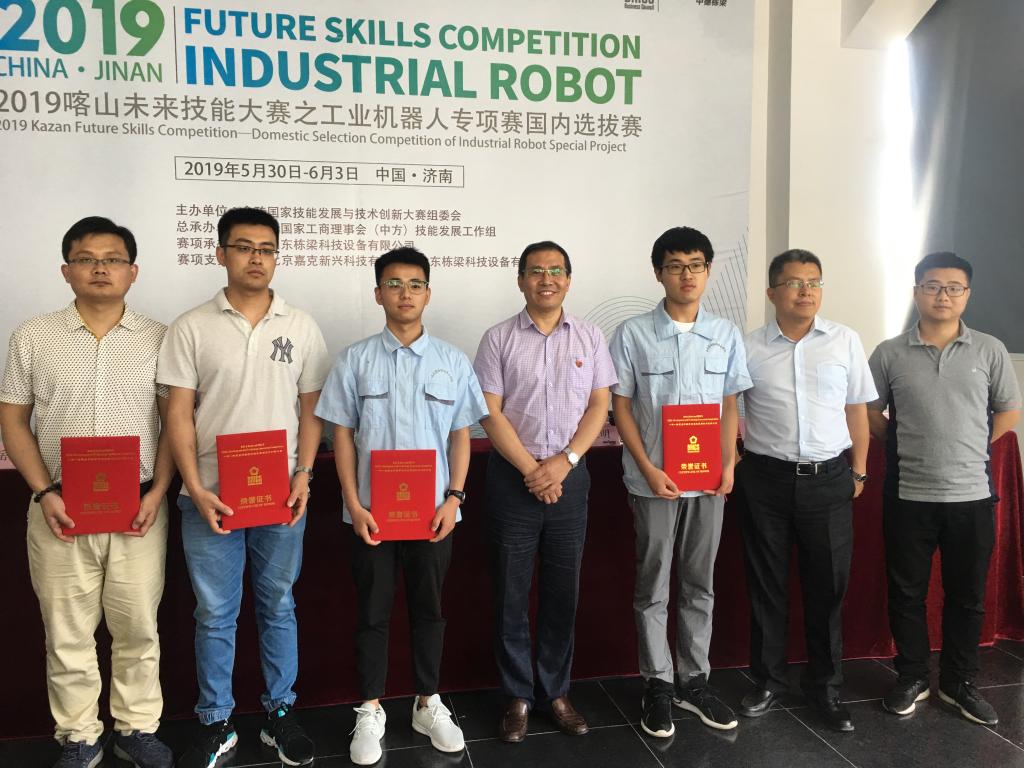 6月3日下午,2019喀山未来技能大赛之工业机器人专项赛国内选拔赛在济南闭幕,金砖国家工商理事会(中方)技能发展工作组组长、金砖国家技能发展与技术创新大赛组委会执委会主席刘振英出席闭幕式,闭幕式上公布了参赛成绩。此次比赛设一等奖3个、二等奖5个、三等奖7个,优秀奖5个,我院以第一名的成绩获一等奖。今年8月中下旬,将代表中国赴俄罗斯喀山参加工业机器人专项赛决赛。