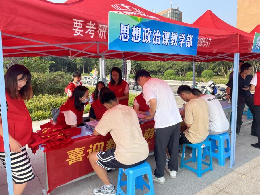 在志愿活动中,直属思政部党支部教师们热情为新同学作引导、分发问卷、悉心讲解,与其他部门齐心协力保障迎新工作的顺利进行。(思政部 董金茹)